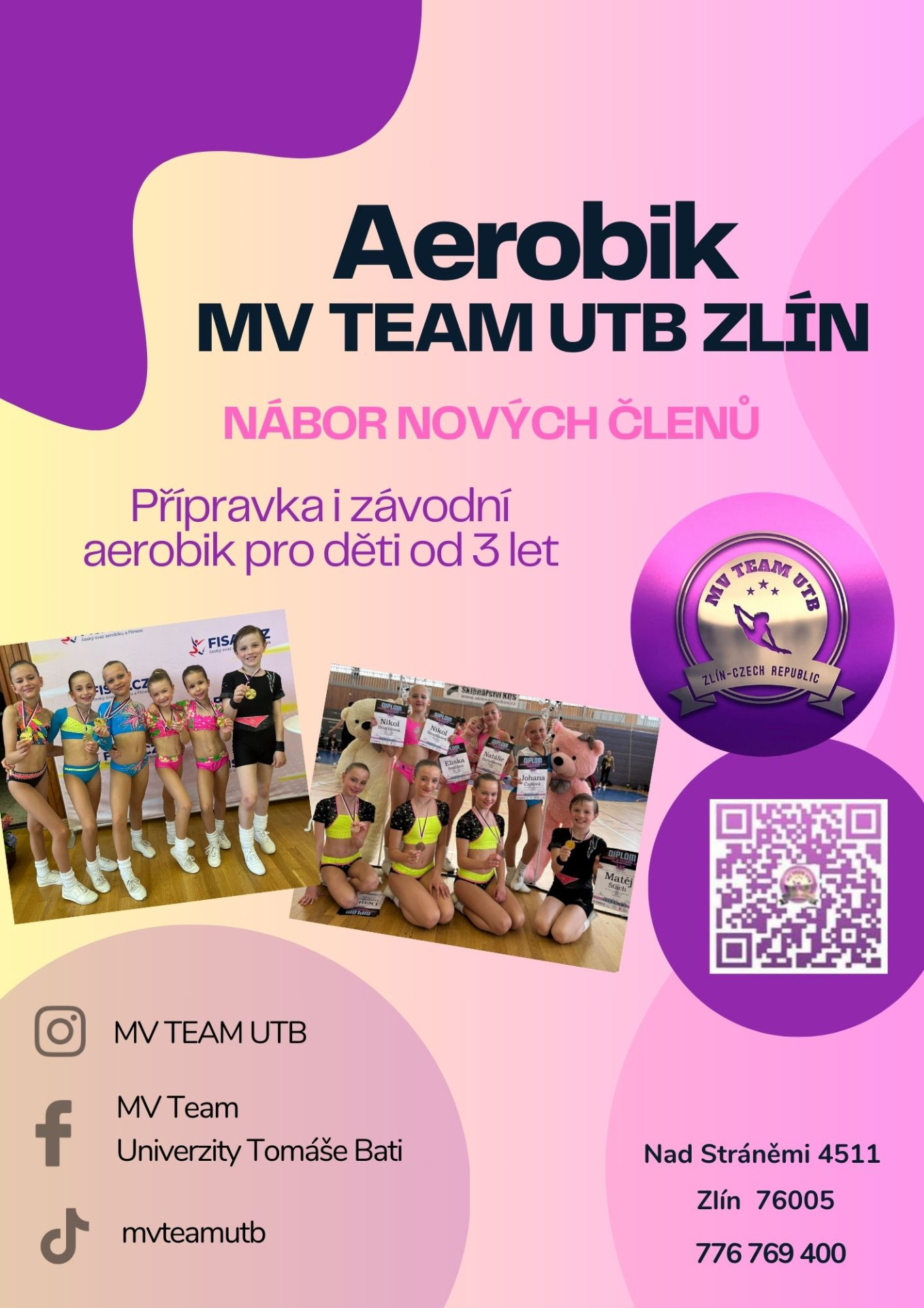 - Úspěchy: Jsme nejúspěšnější klub sportovního aerobiku ve Zlíně i v České republice.